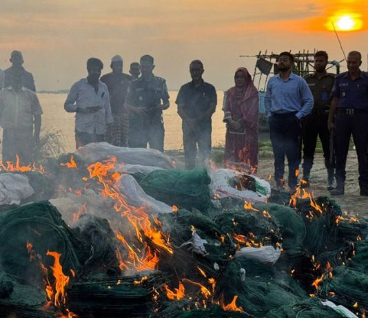 দোহারে কোটি টাকা মূল্যের নিষিদ্ধ চায়না জাল পুড়িয়ে ধ্বংস