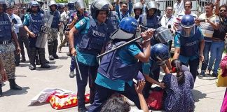 বরিশালে শিক্ষার্থীদের বেধড়ক লাঠিপেটা