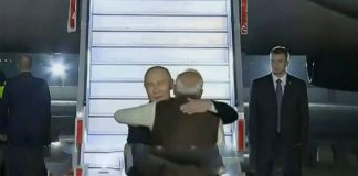 বিমান থেকে নামতেই পুতিনকে জড়িয়ে ধরলেন মোদি