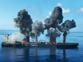 দাউ দাউ করে জ্বলছে জাহাজ, ভিডিও প্রকাশ হুতির