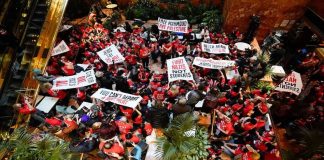 ট্রাম্প টাওয়ারে ফিলিস্তিনি কর্মীর মুক্তির দাবিতে বিক্ষোভকারীদের অবস্থান