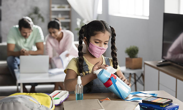 হাঁচি- কাশি দেওয়ায় সঠিক নিয়ম তাকে শিখিয়ে দিন। স্কুল ব্যাগ গোছাতে বইয়ের পাশাপাশি প্রয়োজনীয় টিস্যু, হ্যান্ডস্যানিটাহজার, ওডোমাস, ব্যান্ডএইড, অতিরিক্ত মাস্ক নিতে শেখান।