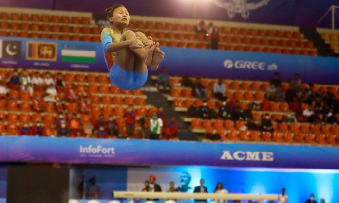 বঙ্গবন্ধু পঞ্চম সেন্ট্রাল সাউথ এশিয়ান জিমন্যাস্টিকস চ্যাম্পিয়নশীপের পদক লড়াইয়ের দ্বিতীয় দিনে ব্রোঞ্জ জয় করেছে বাংলাদেশ। শুক্রবার (২৯ অক্টোবর) বিকেলে মিরপুর শহীদ সোহরাওয়ার্দী ইনডোর স্টেডিয়ামে নারীদের ব্যক্তিগত ভোল্টিং টেবিল ইভেন্টে ১২.৪২ স্কোর গড়ে ব্রোঞ্জ পদক পেয়েছেন বাংলাদেশের বনফুলি চাকমা।