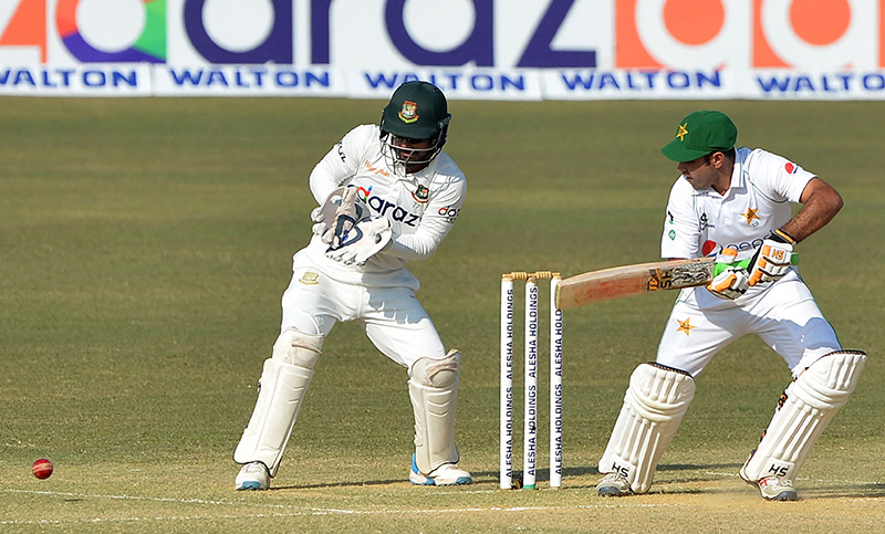 প্রথম ইনিংসে ভালো ব্যাটিং করার পর দ্বিতীয় ইনিংসে যথারীতি আসা-যাওয়ার খেলা খেলেন বাংলাদেশি ব্যাটাররা। একমাত্র লিটন দাস ছাড়া সবাই ব্যর্থ। জয়ের জন্য পাকিস্তানের সামনে টার্গে ২০২ রান। বাকি ছিল দেড় দিনের চার সেশন। কিন্তু চতুর্থ দিনের বিকালেই জয়ের পথে অনেকটা এগিয়ে গেল পাকিস্তান। আজ দিনশেষে তাদের সংগ্রহ বিনা উইকেটে ১০৯ রান । জয়ের জন্য আগামীকাল শেষ দিনে তাদের আরও ৯৩ রান প্রয়োজনে। প্রথম ইনিংসের মতো আজও শতাধিক রানের ওপেনিং জুটি গড়েছেন আবিদ আলী আর আব্দুল্লাহ শফিক।