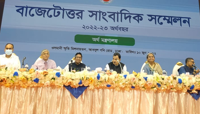 শুক্রবার রাজধানীর ওসমানী স্মৃতি মিলনায়তনে বাজেটোত্তর সংবাদ সম্মেলনে বক্তব্য রাখেন অর্থমন্ত্রী আ হ ম মুস্তফা কামাল। ছবি: ভোরের কাগজ