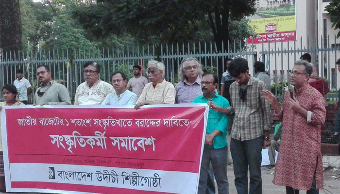 শনিবার (১১ জুন) বিকেলে রাজধানীর শাহবাগ জাদুঘরের সামনে বাংলাদেশ উদীচী শিল্পীগোষ্ঠী আয়োজিত সংস্কৃতি খাতে জাতীয় বাজেটের ন্যূনতম এক শতাংশ বরাদ্দের দাবিতে সংস্কৃতিকর্মী সমাবেশে বক্তারা এসব কথা বলেন।