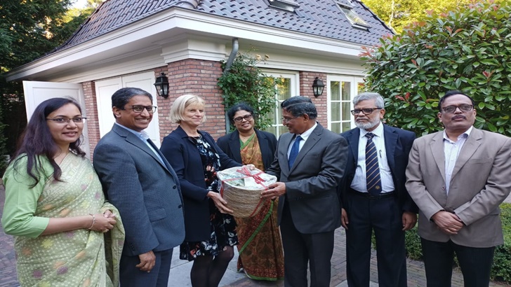 নেদারল্যান্ডসের দ্য হেগে বাংলাদেশ দূতাবাস বাংলাদেশ ভবনে ওয়াগেন ইউনিভার্সিটি অ্যান্ড রিসার্চের প্রেসিডেন্ট ড. সজুকজে হেইমোভারারের সঙ্গে বাংলাদেশের কৃষি উন্নতির বিষয়ে আলোচনা করেন।