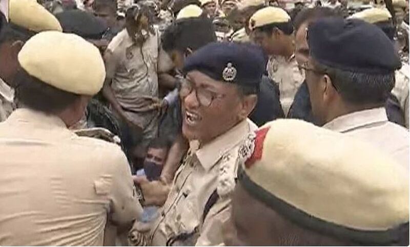 রাহুল গান্ধী প্রতিবাদ জানানোর একপর্যায়ে রাস্তায় বসে পড়েছেন। পুলিশ তাকে ঘিরে রেখেছে। এনডিটিভি জানিয়েছে, একপর্যায়ে রাহুল গান্ধীকে আটক করা হয়েছে।