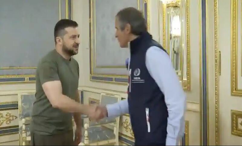 ইউক্রেনের প্রেসিডেন্ট ভোলোদিমির জেলেনস্কি জাতিসংঘের পারমাণবিক নজরদারি সংস্থার (আইএইএ) প্রধান রাফায়েল গ্রোসির সঙ্গে সাক্ষাৎ করেছেন। স্থানীয় সময় মঙ্গলবার কিয়েভে তাদের বৈঠক অনুষ্ঠিত হয়।
