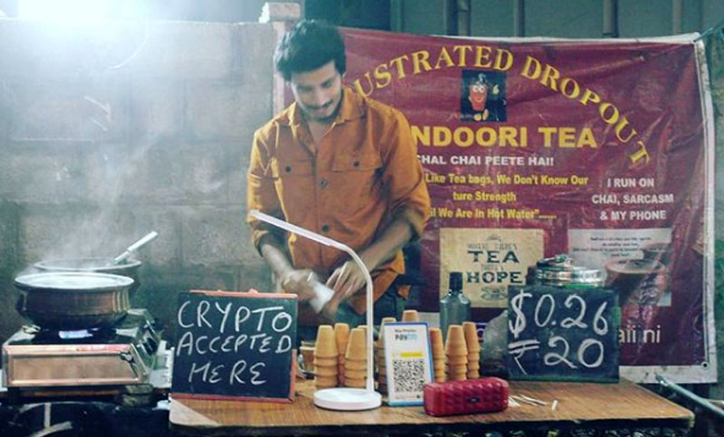 বেঙ্গালুরুতে শুভাম সাইনির চায়ের দোকান, যার নাম ‘ফ্রাস্ট্রেটেড ড্রপআউট’, দাম দেওয়া যায় বিটকয়েনে। (ছবি : টুইটার)