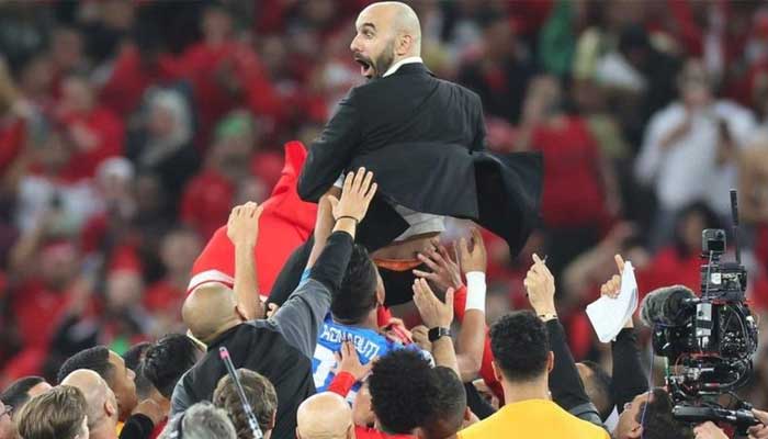 পর্তুগালকে হারানোর পর উল্লসিত মরক্কোর কোচ ওয়ালিদ রেগ্রাগুই। ফাইল ছবি
