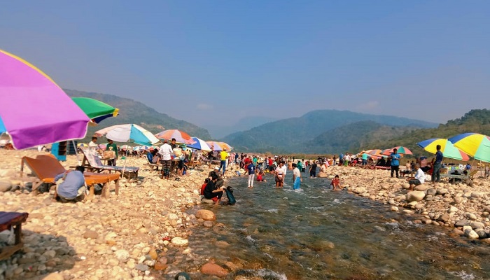 সিলেটের অন্যতম দর্শনীয় স্থান সাদা পাথরে শুক্রবার (২৩ ডিসেম্বর) পর্যটকদের উপচে পড়া ভিড় দেখা গেছে। টানা তিনদিনের সরকারি ছুটিতে ধলাই নদীর শীতল পানির স্পর্শ নিতে এসেছেন পর্যটকরা। আবহাওয়া ও মৌসুম বদলের সাথে সাথে পাল্টে গেছে সাদা পাথরের রূপ ও চিত্র।