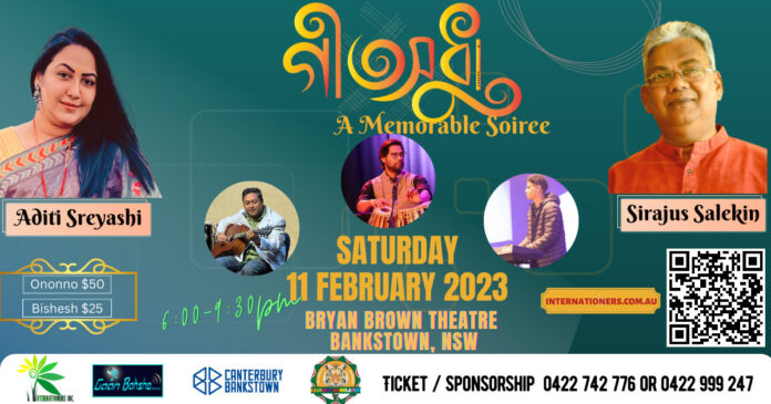 অস্ট্রেলিয়া সিরাজুস সালেকীন ও অদিতি শ্রেয়সী’র সঙ্গীত সন্ধ্যা গীতসুধা অনুষ্ঠিত হবে ১১ ফেব্রুয়ারি