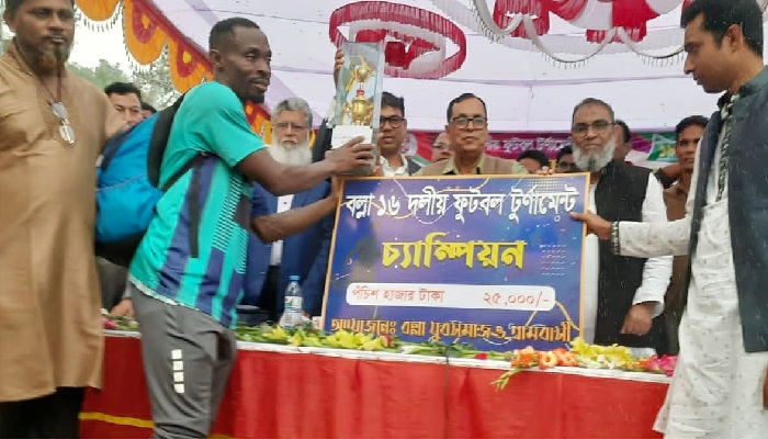 শনিবার (১৮ ফেব্রুয়ারি) বিকেলে বল্লা স্কুল মাঠে ফাইনাল খেলায় মাটিকোমরা ফুটবল একাদশ দলের হয়ে নাইজেরিয়ান ফুটবলার সাইমন অংশগ্রহণ করেন। বিদেশি এই ফুটবলারের পায়ের জাদু দেখতে মাঠে ভিড় করে উৎসুক জনতা। খেলা শুরুর আগেই কানায় কানায় পূর্ণ হয়ে যায় বল্লা বিএনকে মাধ্যমিক বিদ্যালয়ের মাঠ। মাঠে জায়গা না পেয়ে আশেপাশের বাড়ির ছাদে বসেও খেলা দেখেছে হাজার হাজার দর্শক।