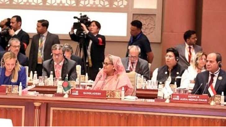 বাংলাদেশের কথা বলতে গিয়ে প্রধানমন্ত্রী বলেন, ২০০৯ সালে গণতন্ত্র ও জনগণের মৌলিক অধিকার ফিরে আসে। পরবর্তী সাড়ে ১৪ বছরে বাংলাদেশে অভূতপূর্ব আর্থ-সামাজিক পরিবর্তন হয়েছে।