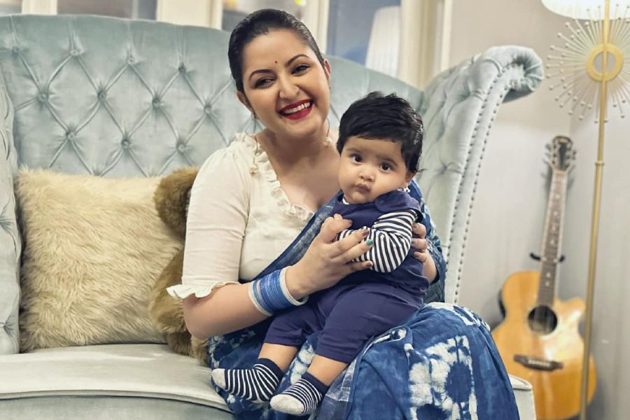 ছেলে রাজ্যকে কোলে নিয়ে