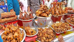 গতকাল দেখা গেল, মানুষের ঘন চলাচল আর সংকীর্ণ স্থানের ভেতরেই গরম কড়াইয়ে ভাজা হচ্ছে জিলাপি। ফুটন্ত তেলে ছেড়ে দেওয়া হচ্ছে পেঁয়াজু, বেগুনি, সবজির বড়াসহ আরো নানা পদ। আগুনে ঝলসানো হচ্ছে নানা রকম কাবাব ও মাংসের পদ।