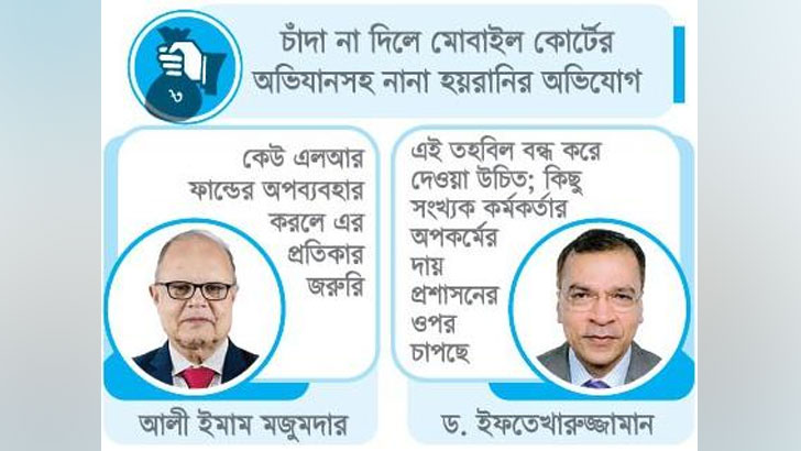 সংশ্লিষ্ট সূত্রে জানা গেছে, চাঁদাবাজির বিপুল এই টাকা এলআর ফান্ডের (লোকাল রিলেশন্স) নামে ‘হালাল’ করা হয়। স্থানীয় পর্যায়ে বেসরকারি চাঁদা বা অনুদানের অর্থে এলআর ফান্ড গঠিত। জেলা প্রশাসক (ডিসি) ও উপজেলা নির্বাহী কর্মকর্তার (ইউএনও) অধীনে এই তহবিল পরিচালিত হয়। জাতীয় সংসদের উপনেতা ও সাবেক কৃষিমন্ত্রী বেগম মতিয়া চৌধুরী এই তহবিলকে চাঁদাবাজি বলে মন্তব্য করেছিলেন।