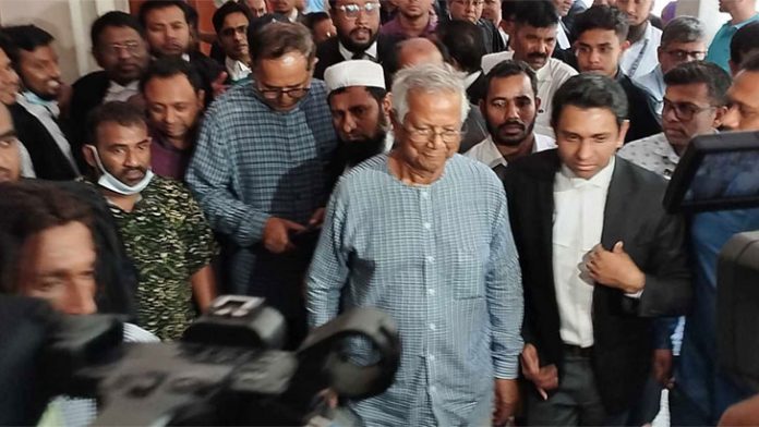 এর আগে দুপুর পৌনে ১টার দিকে আদালতে আসেন ড. ইউনূসসহ অন্যান্য আসমিরা।