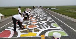 এই ১৪ কিমি দীর্ঘ আলপনাটি করতে ৬৫০-এর বেশি শিল্পী গত কয়েকদিন ধরে নিরলসভাবে কাজ করে যাচ্ছে। এটি ১২ হাজার লিটারেরও বেশি রং ব্যবহার করে আঁকা হয়েছে বলে তিনি জানান।
