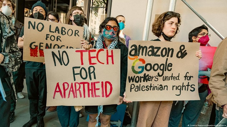 যুক্তরাষ্ট্রের ১২০টিরও বেশি বিশ্ববিদ্যালয়ের শিক্ষার্থীরা ঘোষণা দিয়েছেন, গুগল ও অ্যামাজন কোম্পানিতে চাকরি করবেন না এবং এ দুই কোম্পানির ঘরোয়া প্রশিক্ষণ কোর্সেও অংশ নেবেন না, যতক্ষণ না এ দুই কোম্পানি দখলদার ইসরাইলের সঙ্গে ‘নিম্বাস’ প্রকল্পে শরিক হওয়ার চুক্তি বাতিল করে।