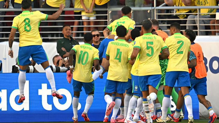সান্তা ক্লারার লেভিস স্টেডিয়ামে খেলতে নেমে ম্যাচের শুরুতেই গোল করে এগিয়ে যায় ব্রাজিল। ১২তম মিনিটে বাঁ-পায়ের দুর্দান্ত এক ফ্রি কিক থেকে কলম্বিয়ার জালে বল জড়িয়ে দেন বার্সেলোনা তারকা রাফিনহা।