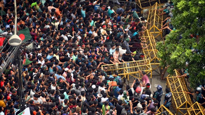 জাতীয় সংসদে জরুরি অধিবেশন ডেকে কোটা সংস্কারের দৃশ্যমান পদক্ষেপ নিতে সরকারকে ২৪ ঘণ্টার আলটিমেটাম দিয়েছেন আন্দোলনরত শিক্ষার্থীরা। রোববার গণপদযাত্রা করে রাষ্ট্রপতির কাছে স্মারকলিপি দেওয়ার পর এই আলটিমেটাম দেন তারা। শিক্ষার্থীদের বিরুদ্ধে করা মামলা তুলে নিতে পুলিশকে আরও ২৪ ঘণ্টা সময় দিয়েছেন তারা। এদিকে শিক্ষার্থীদের পদযাত্রা ঠেকাতে রাজধানীর বিভিন্ন সড়কের মোড়ে মোড়ে ব্যারিকেড দেয় পুলিশ। একের পর এক ব্যারিকেড ভেঙে বঙ্গভবন অভিমুখে এগিয়ে যান শিক্ষার্থীরা। সারা দেশের বিভিন্ন শিক্ষাপ্রতিষ্ঠানের শিক্ষার্থীরাও পদযাত্রা করে নিজ নিজ জেলা প্রশাসকের কার্যালয়ে গিয়ে রাষ্ট্রপতি বরাবর স্মারকলিপি দিয়েছেন।