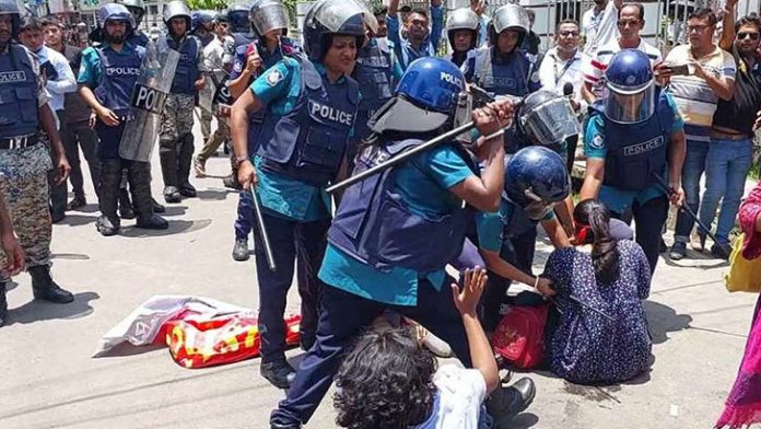 বরিশালে কোটা সংস্কার আন্দোলনকারী শিক্ষার্থীদের ‘মার্চ ফর জাস্টিস’ কর্মসূচিতে দফায় দফায় লাঠিচার্জ করেছে পুলিশ। এতে ২ সংবাদিকসহ অন্তত ১৫ জন আহত হয়েছেন। বুধবার বেলা ১১টা থেকে দুপুর ১টা পর্যন্ত নগরীর সদর রোডের বেশ কয়েকটি পয়েন্টে এ ঘটনা ঘটে। পুলিশ বেধড়ক লাঠিপেটা করে আন্দোলনকারীদের সরিয়ে দেওয়ার চেষ্টা করে। বাধা উপেক্ষা করে চলে যাওয়ার সময় ১০ শিক্ষার্থীকে আটক করেছে পুলিশ।