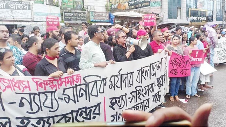 এ সময়ে উপস্থিত ছিলেন- অমিতাভ রেজা, রেদওয়ান রনি, সিয়াম আহমেদ, আজমেরি হক বাঁধন, নীল হুরে জাহানসহ আরও অনেকে। এই সময়ে তারা বিভিন্ন স্লোগান দিচ্ছিলেন।