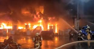 একটি ছবিতে দেখা যায়, উজ্জ্বল লাল ও কমলা রঙের আগুন জ্বলছে এবং ধোঁয়া চারপাশে ছড়িয়ে পড়েছে। আরেকটি ছবিতে দমকল বাহিনীকে আগুন নেভানোর চেষ্টা করতে দেখা যায়।