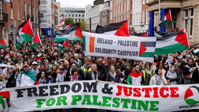 এদিকে ডাবলিনে কয়েকশ মানুষ রাস্তায় নেমে ফিলিস্তিনি পতাকা নেড়ে ‘এখনই যুদ্ধবিরতি’ বলে স্লোগান দিয়েছেন।