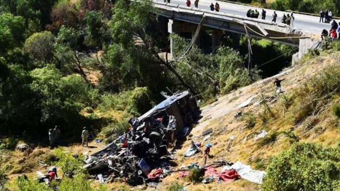 যাত্রীবাহী ওই বাসটিতে পেছন থেকে একটি ট্রাক্টর ট্রেইলার ধাক্কা দিলে এটি নিয়ন্ত্রণ হারালে দুর্ঘটনা ঘটে। জেকাতেকাস গর্ভনর ডেভিড মনরিয়ার বলেন, প্রাথমিকভাবে ২৪ জন নিহতের খবর পাওয়া গেছে। তবে পরবর্তীতে রাজ্যের অ্যাটর্নি জেনারেল অফিসের পক্ষ থেকে প্রকৃত নিহতের সংখ্যা ১৯ বলে জানানো হয়।