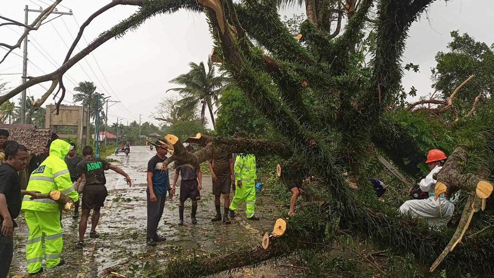 ফিলিপাইনে ভয়াবহ টাইফুনের আঘাতে আছড়ে পড়া গাছপালা সরানোর চেষ্টা করছেন সরকারী কর্মীরা। এক মাসেরও কম সময়ের মধ্যে চতুর্থ টাইফুন ফিলিপাইনে আঘাত হেনেছে। এ পরিস্থিতিতে হাজার হাজার গ্রাম খালি করার নির্দেশ দেওয়া হয়েছে। বন্দরগুলোও বন্ধ করে দেওয়া হয়েছে।