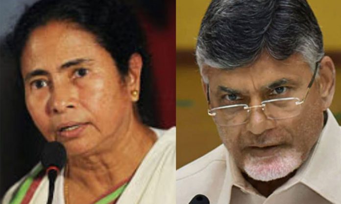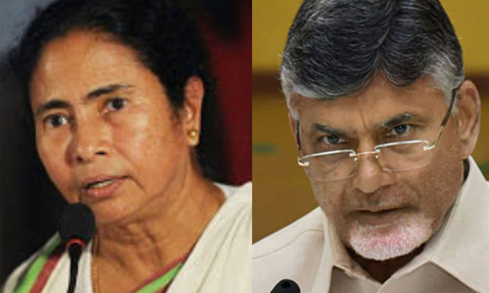 মুখ্যমন্ত্রী মমতা বন্দ্যোপাধ্যায় (বাঁয়ে) ও অন্ধ্র প্রদেশের মুখ্যমন্ত্রী এন চন্দ্রবাবু নাইডু (ডানে)।