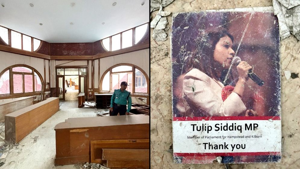 যুক্তরাজ্যের ক্ষমতাসীন দল লেবার পার্টির মন্ত্রী টিউলিপ সিদ্দিকের প্রচারপত্র, লেবার পার্টির পোস্টার, নামী ব্র্যান্ডের শপিং ব্যাগ, দামি কলমের মোড়ক, বিদেশি বিশিষ্টজনদের উপহার দেওয়া পোশাক-গয়না, তৈজসপত্রসহ আরও নানা জিনিস পড়ে আছে এখানে-সেখানে।