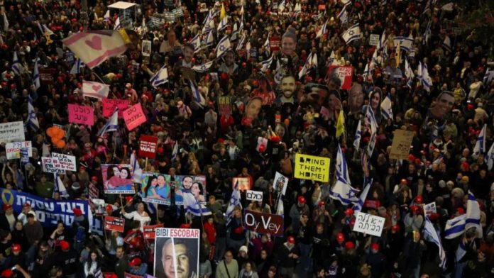 যুদ্ধবিরতি ও জিম্মি মুক্তি নিয়ে ফিলিস্তিনি প্রতিরোধ আন্দোলন হামাসের সঙ্গে সমঝোতা হওয়ার পরও স্বস্তিতেই নেই ইসরাইলি প্রশাসন। হামাসের কাছে আটক শেষ জিম্মি ঘরে ফেরার আগ পর্যন্ত প্রতিবাদ অব্যহাত রাখার ঘোষণা দিয়েছে দেশটির বহু বিক্ষোভকারী।