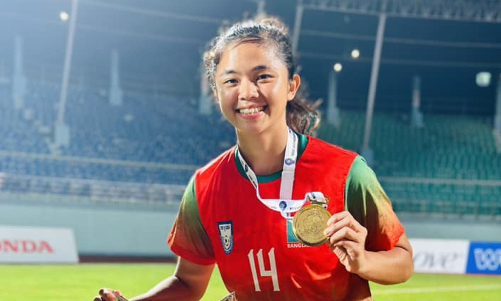 সাফ চ্যাম্পিয়ন হওয়ার মেডেল হাতে সুমাইয়া। ছবি : সুমাইয়ার ফেসবুক থেকে
