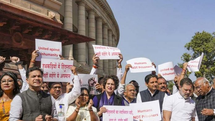 যুক্তরাষ্ট্রের পুলিশ অবৈধ ভারতীয়দের বিমানবন্দরে এনেছিল শিকলে বেঁধে ও হাতকড়া পরিয়ে। বৃহস্পতিবার সকালে এই ‘খবর’ প্রকাশ করেছে মার্কিন সংবাদমাধ্যম।