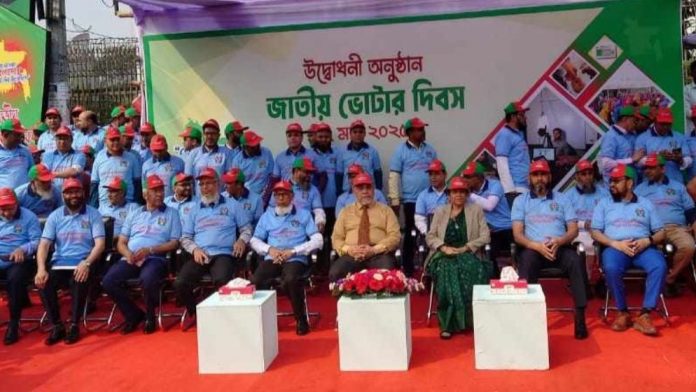 শনিবার ইসি জানায়, রোববার সকাল সোয়া ৯টায় আগারগাঁওয়ের নির্বাচন ভবনের সামনে জাতীয় ভোটার দিবসের কার্যক্রম উদ্বোধন করবেন প্রধান নির্বাচন কমিশনার (সিইসি) এএমএম নাসির উদ্দিন। উদ্বোধনী অনুষ্ঠানে সিইসি ছাড়াও অন্য চার নির্বাচন কমিশনার এবং নির্বাচন কমিশন সচিবালয়ের সিনিয়র সচিবসহ সব কর্মকর্তা, কর্মচারী উপস্থিত থাকবেন। উদ্বোধনী অনুষ্ঠানের পর সকাল সাড়ে ৯টায় শোভাযাত্রা বের হবে। এরপর বেলা ১১টায় নির্বাচন ভবনের বেইজমেন্টে আলোচনা সভা অনুষ্ঠিত হবে। অনুষ্ঠানে জুলাই গণ-অভ্যুত্থানে আহত কয়েক ভোটারের হাতে স্মার্ট কার্ড তুলে দেওয়া হবে হবে বলে জানিয়েছে ইসির জনসংযোগ শাখা।