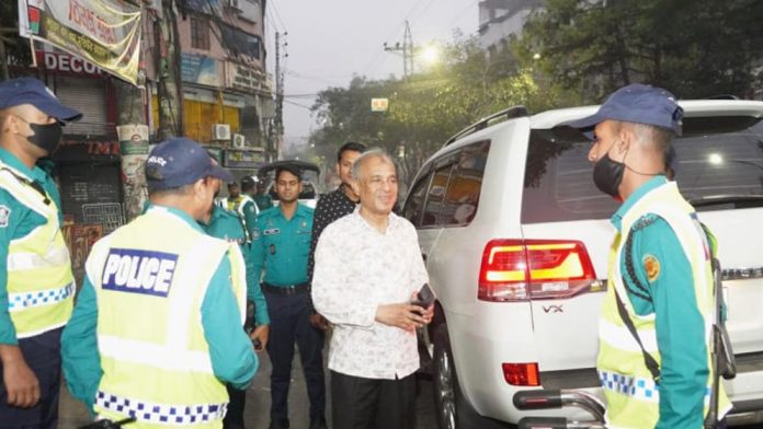 পথিমধ্যে তিনি রাজধানীর বিভিন্ন গুরুত্বপূর্ণ মোড়ে স্থাপিত কয়েকটি চেকপোস্ট/তল্লাশিচৌকি পরিদর্শন করেন এবং দায়িত্বরতদের সঙ্গে কথা বলেন। তাছাড়া তিনি যৌথ বাহিনীর কয়েকটি টহল দলের কার্যক্রম মনিটরিং করেন।