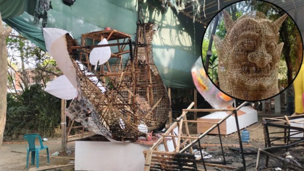 বর্ষবরণ আনন্দ শোভাযাত্রা উদযাপনকে সামনে রেখে ঢাকা বিশ্ববিদ্যালয়ের চারুকলা অনুষদের বানানো ‘ফ্যাসিস্ট হাসিনার মুখাকৃতি’ ও ‘শান্তির পায়রা’ মোটিফ দুটি পুড়ে গেছে।