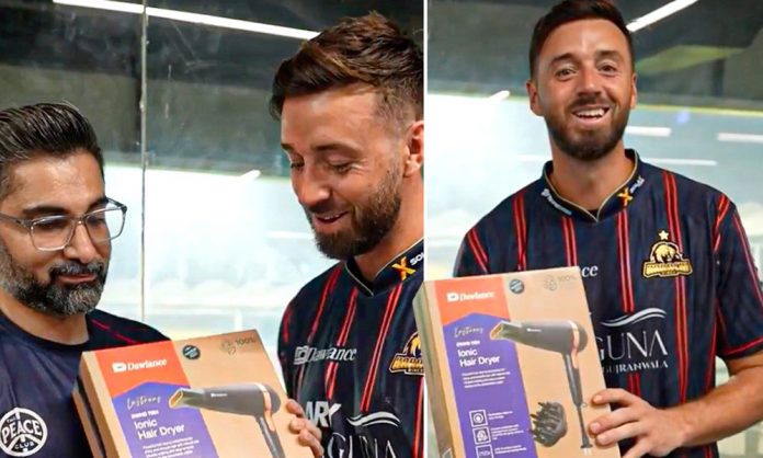 ম্যাচ শেষে জেমস ভিন্সকে একটি হেয়ার ড্রায়ার দেয় করাচি কিংস। ছবি : এক্স থেকে