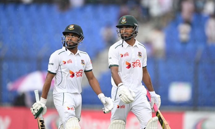 প্রথম ইনিংসে ১৭৭ রানের লিড নিয়ে মধ্যাহ্ন বিরতিতে গেছে বাংলাদেশ। তবে এরই মধ্যে আবহাওয়া চিন্তার কারণ হয়ে দাঁড়িয়েছে—আকাশে মেঘ জমেছে, আর মাঠে নেমেছে বৃষ্টি। ইতোমধ্যেই উইকেট ঢেকে ফেলা হয়েছে কাভার দিয়ে।