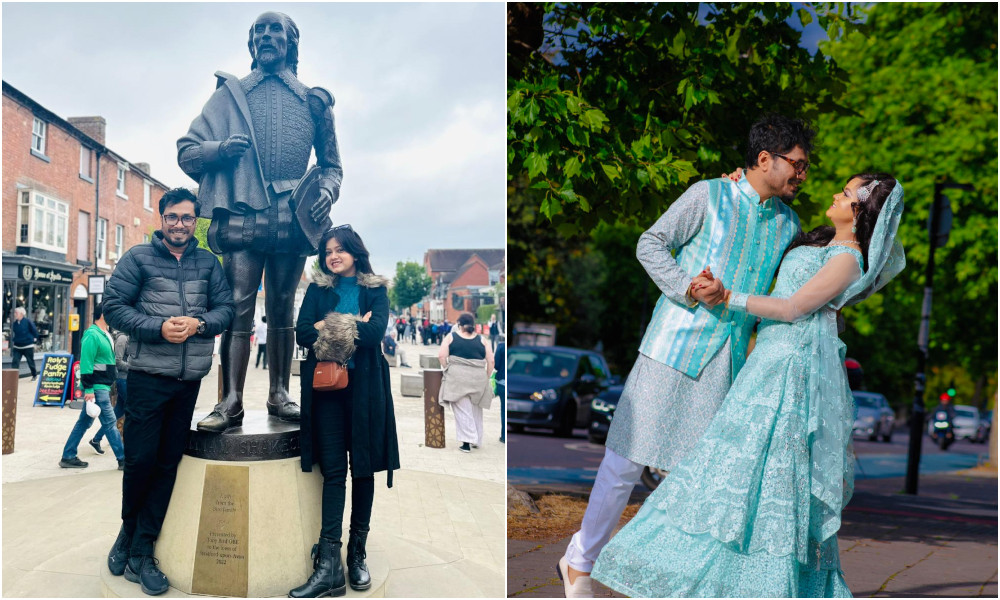 এবার তারা লন্ডনের রাস্তায় নতুন করে আয়োজন করেছেন রিসেপশন অনুষ্ঠানের। ছাদখোলা গাড়িতে অনুষ্ঠানে অংশ নিতে দেখা গেছে তাদের দুজনকে। পেস্ট কালারের লেহেঙ্গায় অসাধারণ লাগছে মুনমুনকে। এ দিন জামিলও পরেছিলেন স্ত্রীর সঙ্গে রঙ মিলিয়ে পাঞ্জাবি।