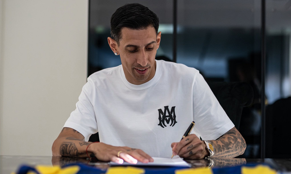 চুক্তিতে সই করছেন ডি মারিয়া। ছবি : এক্স থেকে