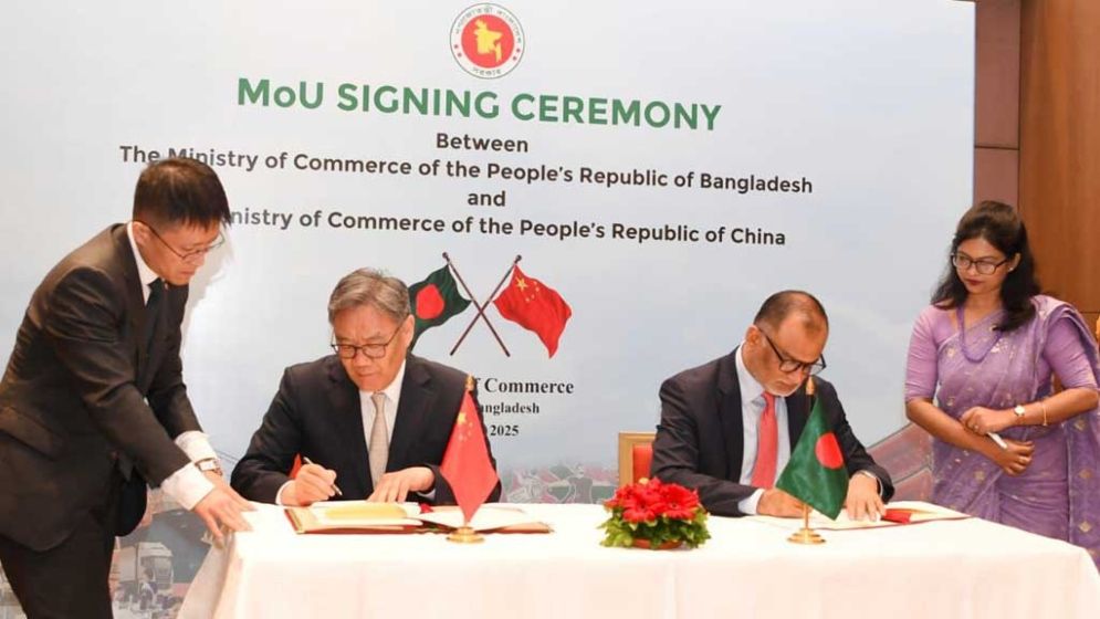 বাংলাদেশ ও চীনের মধ্যে বাণিজ্য সম্প্রসারণের লক্ষ্যে যৌথ ওয়ার্কিং গ্রুপ গঠন এবং কমার্স বিষয়ে সহযোগিতা সংক্রান্ত দুটি সমঝোতা স্মারক সই হয়েছে। স্মারকে বাংলাদেশের পক্ষে বাণিজ্য উপদেষ্টা শেখ বশিরউদ্দীন ও চীনের পক্ষে সেই দেশের বাণিজ্যমন্ত্রী ওয়াং ওয়েনতাও স্বাক্ষর করেন।
