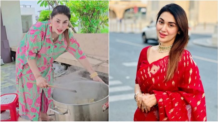 শুধু তাই নয়, জবাই করা মাংস মাটির চুলায় রান্নাও করেছেন ঈদের দিন। এ সময় অভিনেত্রীর পাশে চেয়ারে বসা ছিল তার একমাত্র সন্তান আব্রাম খান জয়।