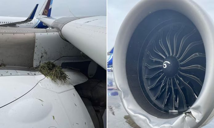 এনডিটিভি তাদের হাতে পাওয়া ছবির বর্ণনায় বলেছে, বিমানের পেছনের অংশে ঘাসের স্তূপ আটকে আছে এবং ডান পাশের ইঞ্জিনের বাইরের অংশ (নাসেল) ক্ষতিগ্রস্ত হয়েছে।