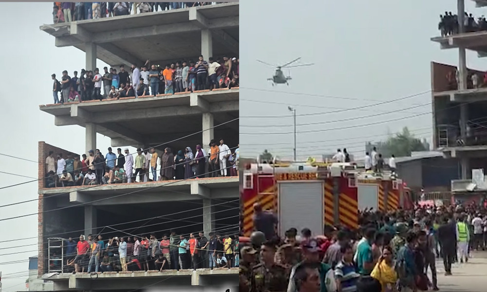 কী ঘটেছে—দেখতে হাজার হাজার মানুষ ভিড় করছেন। আশপাশের ভবনেও শত শত মানুষজন ভিড় করছেন। এদিকে, উদ্ধার তৎপরতা চালানো সংস্থার পক্ষ থেকে সেখানে ভিড় না করার অনুরোধ জানানো হচ্ছে। তবে এতে উদ্ধার তৎপরতা ও আইন-শৃঙ্খলা রক্ষায় যোগ দিয়েছে দুই প্লাটুন বর্ডার গার্ড বাংলাদেশ (বিজিবি)।