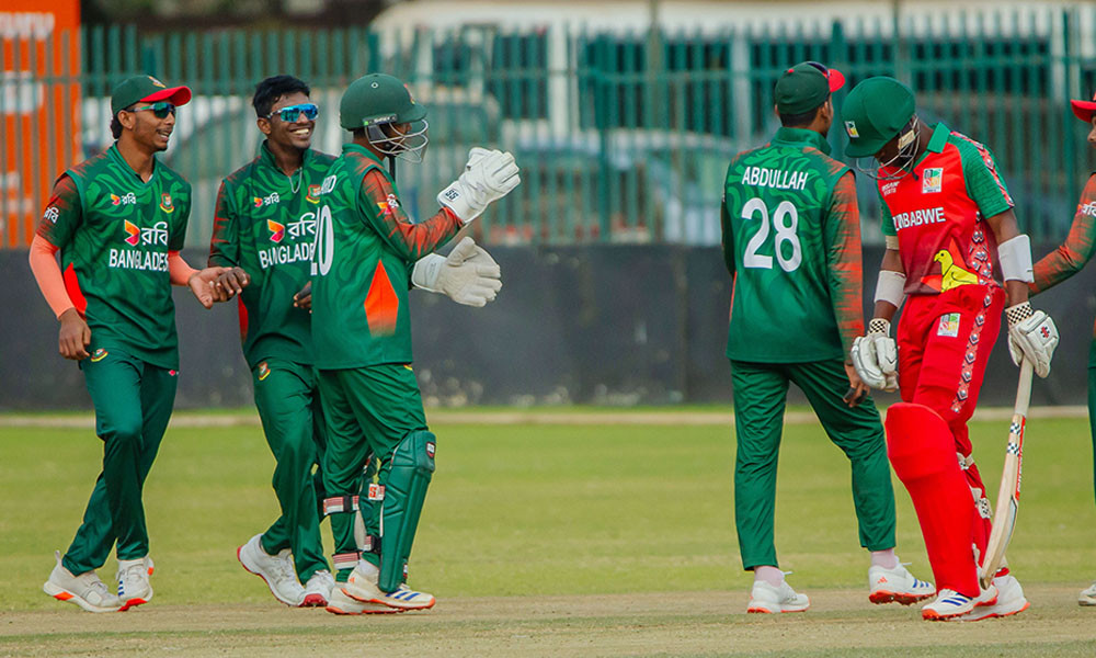 জয়ের ধারা অব্যাহত রেখেছে বাংলাদেশ অনূর্ধ্ব-১৯ দল। দক্ষিণ আফ্রিকার যুবাদের পর আজ হারারেতে জিম্বাবুয়েকে হারিয়েছে বাংলাদেশ। ৯১ রানের জয়ে ত্রিদেশীয় সিরিজে ৪ পয়েন্টে টেবিলের শীর্ষেও উঠেছে বাংলাদেশ।